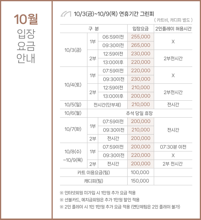 10¿ù ÀÔÀå¿ä±Ý¾È³» 10/03(±Ý) ~ 10/09(¸ñ)