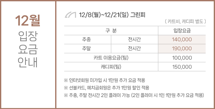 12¿ù ÀÔÀå¿ä±Ý¾È³» 12/8(¿ù) ~ 12/21(ÀÏ)