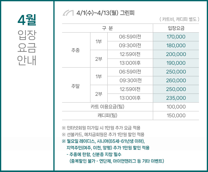 4¿ù ÀÔÀå¿ä±Ý¾È³» 4/1(¼ö) ~ 4/13(¿ù)