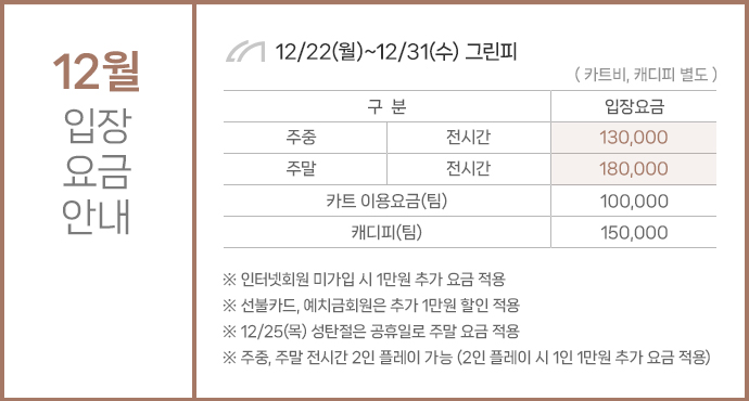 12¿ù ÀÔÀå¿ä±Ý¾È³» 12/22(¿ù) ~ 12/31(¼ö)